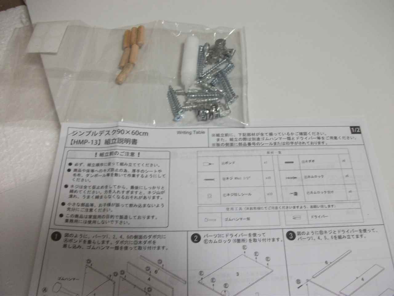 今回、天板が90センチ✕60センチとワークスペースを広く取ることができ、しかも価格的に手頃な「HMP-13WH」という型番のデスクを通販で購入し、組み立てにチャレンジしてみました。