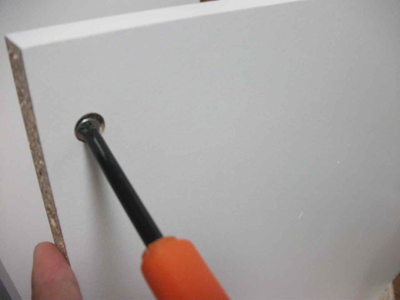 カムロック(ネジ)は側板と垂直になるように、あらかじめ開けられている本体の穴にねじ込みます。